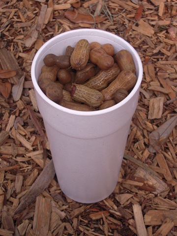 Tak więc jeszcze zanim wjechaliśmy na dobre na wybrzeże Zatoki Meksykańskiej, rozgrzewkę mieliśmy za sobą i nastawieni byliśmy bardzo orzechowo. Nic więc dziwnego, że kiedy trafiliśmy na niedzielny targ w Tallahassee i zobaczyliśmy wielki napis “Green Boiled Peanuts” (“gotowane zielone orzeszki ziemne”) nie wahaliśmy się długo i kupiliśmy wielki kubek w celu degustacji orzechowych specjałów spodziewając się wariacji boskiego masła orzechowego. A tu niespodzianka! Łupinki były dość miękkie, w środku orzeszki wyglądały bardzo klasycznie tyle, że były mokre, bo właśnie wyciągnięto je z wielkiego gara pełnego brązowawej słonej wody. Za to smak… hmm… smakowały jak gotowana fasolka. Pyszna, biała, delikatna i lekko twarda fasolka o cieniutkiej skórce. Z lekko orzechową nutą ujawniającą się pod koniec degustacji. Słona woda sprawiała, że całość rozpływała się w ustach. Gdy w Luizjanie zobaczyliśmy wersję cajun, to nie trzeba nas było długo namawiać. Kupiliśmy cały worek i kolektywnie pochłonęliśmy orzeszki w mgnieniu oka pokrzykując “Ale ostre! Uh! Uh! Ale smaczne! Ho, ho!” Wersja cajun była jeszcze lepsza od wersji podstawowej – mocno pikantna z nutkami imbiru i ostrej papryki, ale tak samo delikatna i – co dziwne – zupełnie nie tłusta. Być może olej pojawia się dopiero w fazie dojrzewania orzechów?