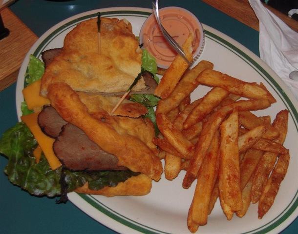 Wydaje mi sie, ze to wspolczesna, a nawet „fast food” wersja kuchni Navajo, oliwki, smietana, frytki no i oczywiscie wielkosc porcji. Te dodatki to na pewno wplyw poludniowych sasiadow, ale tez nie zupelnie oryginalny.GH