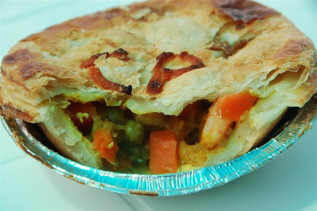 Pie z krewetkami w środku Paj krewetkowy za to nie smakował krewetkami nic a nic, ale warzywne (gdzie te krewetki?) nadzienie było żółciutkie od kurkumy, kolorowe za sprawą groszku i marchewki, i łagodne przyjemnie harmonizowało z ciastem. Po zjedzeniu tak obfitego śniadania spodziewałam się ciężkości na żołądku, a tym czasem nic. Na kilka godzin wypełniło nas błogie uczucie sytości.