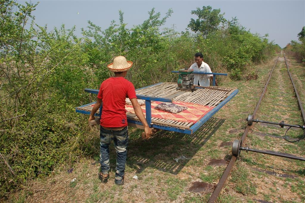 Tory w nieznane a na nich krowy Jedzie pociąg owszem, ale jakiś taki niekompletny jakby. Bambusowy? Rozlatuje się, czy co? Zabawkowy? O co chodzi, zapytacie? Autor chyba sfiksował lub wypił za dużo piwa (kufelek beczkowego w Kambodży to 50 centów, więc troska zrozumiała)…? Chodzi jednak nie o białe myszki, lecz o naprawdę bambusowy pociąg z Battambang na zachodzie Kambodży. Pociąg używany do przewozu lokalnej ludności, towarów w workach, pudłach, koszach i luzem oraz motorków i rowerków wszelakich. No bo skoro już ktoś (chyba Francuzi) zbudował tory kolei, to po co czekać na prawdziwy pociąg, skoro można sposobem przewieźć swoich znajomych i ich pakunki? Bamboo train to teraz bardziej atrakcja dla turystów, choć z nami i lokalni mieszkańcy jechali, ale nikt tam się nie martwi i jazda! Turystów wozi się do wioseczki położonej jakieś 10 km od Battambang wzdłuż torów – lokalni jednak mogą jechać dalej, bo tory prowadzą aż do Phnom Penh. 🙂