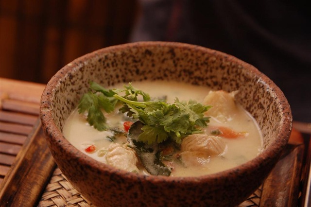 Moje ulubione Tom Kha GalDla mnie w kuchni tajskiej najważniejsze są: imbir i mleko kokosowe. Imbir zresztą mogę pochłaniać w każdej ilości, więc nadzieja, że niedługo sobie zrobię pierniczki troszeczkę trzyma mnie przy życiu. Mleko kokosowe używane w kuchni uzyskuje się z białego miąższu dojrzałego kokosa. Jak się okazuje, świeże mleko kokosowe mogę, jak się uprę, zrobić w domu. To też miłe. Tom kha gal czyli zupa z kurczaka na mleku kokosowym z galangalem jest dla mnie kwintesencją urody kuchni tajskiej. Galangal to tajski imbir, który dodaje zupie ostrości. Na jedną miseczkę zupy wkroiłam jedną małą papryczkę chilli. Tajowie podobno jedzą dziesięć. W ogóle nazwać tom kha gal zupą to niezwykle krzywdzące – jest tak kokosowa, że mogła by zupełnie spokojnie robić za deser. Ciepła, aksamitna i pachnąca lekko drażni imbirem podniebienie, a lemonki kaffir dają wrażenie, że właśnie dokonuje się akt tworzenia jakiś nowych perfum z cytrusową nutą. Uczta dla oczu, orgia dla nosa, a smak niebiański.