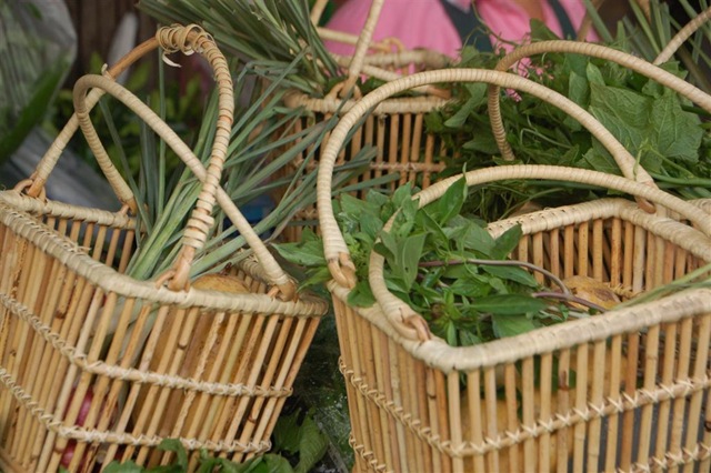 Święconka tajska Musiał nadejść ten dzień i ten pożegnalny azjatycki kącik. Napycham się na zapas dojrzałym mango, zastanawiając się, kiedy znów będę jeść równie pyszne cudo. Już wiem! W czerwcu, jak zaczną się truskawki… Tymczasem jednak z przerażeniem patrzę na zdjęcia z Polski – wszyscy w kurtkach! Brrr… A z owoców czekają na mnie w domu zeszłoroczne jabłka… No może się pocieszę nieco ziemniaczkami z cebulką i z jogurtem, albo cykorią z roquefortem i orzechami włoskimi. Ale póki co, dałam głębokiego nura w pyszności kuchni tajskiej zapisując się na cooking (and lots of eating) class, czyli szkołę gotowania po tajsku. Dodatkiem ekstra były eleganckie koszyki, z którymi wyruszyliśmy na miejscowy targ.  Co stoisko w koszyczku lądowały kolejne smakołyki: a to mango, a to zioła, a to grzybki. Ot, taka tajska święconka.