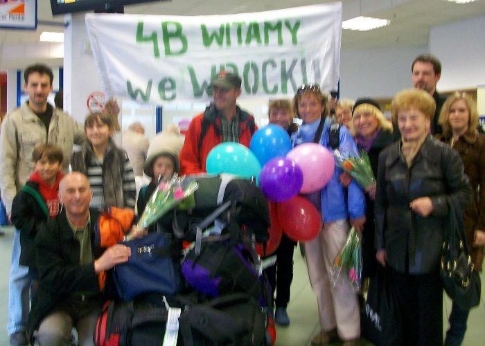 Powitanie na lotniskuTym bardziej, że na takim wyjeździe czas płynie inaczej. Przyjechaliśmy do kraju z wrażeniem, że nie było nas tu wieki. Ile rzeczy przez ten czas się zadziało, ile nowych dróg i mostów zbudowano, prawda? Dla nas to tak, jakby nie było nas tu z pięć lat. Dzieci nam podrosły i wydoroślały, ciuchy żadne na nie nie pasują (tu porada dla podróżujących rodziców, aby nowe ciuszki dla rosnących dzieci zakupić sobie jeszcze w trasie, bo zawartość starej szafy idzie dla potomności), a nasze mieszkanie wydaje nam się takie nieznane (spojrzeliśmy na nie i ze zdziwieniem stwierdziliśmy, że nawet ładne jakieś takie jest i miłe – zupełnie zapomnieliśmy jak wygląda). Ale już kilka razy spotkaliśmy się z reakcją “O, już jesteście!”, “Dopiero co pamiętam, że jechaliście!”. Dla większości naszych znajomych ten rok przemknął, jak … każdy rok. Dla nas – rozciągnął się w czasie (jak na obrazach Dalego), rozlazł i zwielokrotnił.
