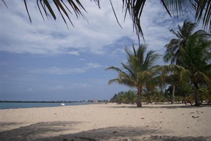 Widoczek spod naszej palmy Od kilku dni siedzimy na plaży w Placencji (na południu Belize) i wypoczywamy. Najpierw pogoda była taka sobie, bo praktycznie przez 2 dni były burze i deszcze (pierwszej nocy niektórzy bardziej strachliwi z naszej drużyny nawet obawiali się, że to huragan), ale potem wyszło słoneczko i mimo wiatru od morza (a może dzięki niemu) jest bardzo przyjemnie. Aby więc umilić sobie całkowicie ten (bardziej turystyczny, niż wyprawowy) odcinek naszej podróży wybraliśmy się wraz z firmą SeaHorse na nurkową wycieczkę na jedną z pobliskich wysepek: Silk Caye. Popłynęła cała rodzina: ja miałem wykupione dwa nurkowania na rafie, a reszta snorkeling, czyli nurkowanie z maską i rurką (fachowo zwaną fajką). Okazało się zresztą, że ten snorkeling to nie było takie zwykłe sobie pływanie, tylko dobrze zorganizowane dwie wycieczki na rafę, gdzie przewodnik wziął całą grupę dookoła wyspy, pokazując i objaśniając wszystkie przepływające ryby. Ale po kolei.