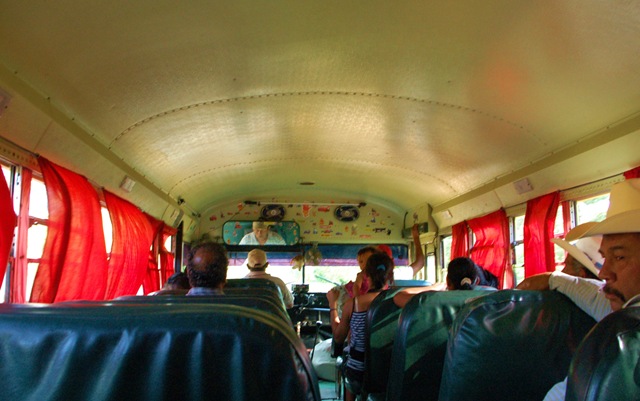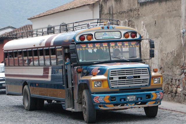 Gwatemala - ChickenbusW kolejnych wioskach prędkość autobusu nie jest, ykhm… zbyt duża, więc można robić zdjęcia scenkom rodzajowym, a nawet na chwilkę wyskoczyć po jakiś wypatrzony smakołyk. Żeby zaś pasażerom nie było nudno muzyka z głośników leci na cały regulator. Dominuje nurt romatyczno-latynoski oraz lata 80-te. “Chiquitita” w autobusiku w maleńkiej honduraskiej wiosce ma niezapomniany smak… No i jak tych chickenbusów nie pokochać?