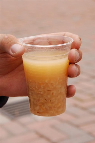 Jak dla mnie zamiast kawy mogą być serwowane także z morocho, białym, gęstym, ciepłym i słodkim napojem z białej kukurydzy i owsianki – w smaku zbliżonym do budyniu waniliowego ze szczyptą cynamonu. Pod tajemniczą nazwą avena (kupiliśmy zupełnie w ciemno), zbliżony napój jest sprzedawany także na zimno – ma wtedy gładką konsystencję i znakomicie ochładza w upał. No i na koniec jeszcze jeden specjał z kukurydzy czyli chicha, o której pisałam już przy okazji kącika łasucha z Granady. Chicha ekwadorska, którą piliśmy, znów nie zawierała alkoholu, podawano ją na ciepło -była lekko słodka pływało w niej sporo ziaren kukurydzy. Bardzo przyjemna alternatywa do gorącej herbaty w chłodny dzień, jakich tutaj sporo. Istnieje także chicha morada, przygotowywana z fioletowej kukurydzy, ale tej nie udało nam się jeszcze spróbować. Dziwnym trafem nie udało nam się także kupić chichy alkoholowej – nie mam pojęcia dlaczego. Może powinniśmy pojawić się na jakimś ekwadorskim weselu – tam leje się podobno strumieniami. A do tego czasu pozostaje nam sprawdzanie menu lokalnych comedores (tańszych jadłodajni) i co lepszych restauracji w poszukiwaniu zaginionego napoju, którego bezwzględnie musimy spróbować zanim opuścimy Amerykę Południową. Rozmaitość gatunków chichi jest tak wielka, że pewnie wypróbujemy większość, zanim natrafimy na tę właściwą.