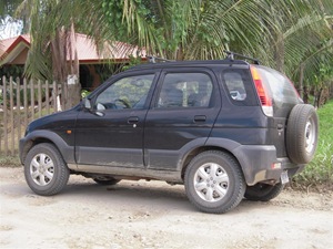 Nasz dzielny pojazd kosmiczny Osobnej opowieści wymagają drogi szutrowe po górach! Są takie miejsca, gdzie asfalt nie dochodzi i już. Częściowo podobno celowo – chodzi o to, aby turyści danego regionu nie zalali. Częściowo pewnie politycznie, a w większości przypadków rządzi twarda ekonomia. Wypożyczając auto dostaje się mapkę z zaznaczonymi drogami asfaltowymi i szutrowymi oraz (do podpisania) długą instrukcję co należy robić, a czego nie (np. nie przejeżdżać przez zbyt głębokie rzeki, używać napędu na 4 koła w górach, nie pytać nieznajomych o drogę i tym podobne rady). Muszę przyznać, że jadąc po górach szutrową drogą i widząc gnający z naprzeciwka wielki trąbiący na zakrętach autobus zerkasz nerwowo na prawo, gdzie zieje spora przepaść i brak jakichkolwiek barierek. Albo taki widoczek zarejestrowany w ułamku sekundy: droga ostro w dół zakrętami, a przy ostatnim na wprost ciebie wielka skała, ostry zakręt w lewo tuż przed nią i malutka kapliczka z palącymi się świeczkami. Dopiero jak już ją miniesz i otrzesz pot z czoła, przychodzi refleksja: widocznie wielu zakrętu nie wyrobiło. A znowu na półwyspie Osa, gdzie byliśmy w parku narodowym Corcovado pagórki były niewielkie, za to niezliczona liczba rzeczek i strumyków do przejechania (najszersze jakieś 20 metrów). Szczególnie po ciemku robiło to niezłe wrażenie, bo nie do końca było widać, jak jest głęboko. Reflektory tylko trochę wydobywały leżące kamienie. W każdym razie przejechaliśmy, a zabawa była spora – wszystkim fanom 4 kółek polecam!