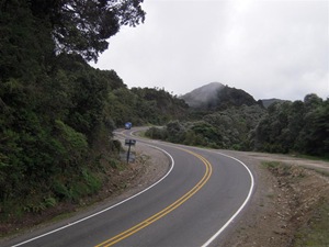 Panamerican Highway na 3000 Jeszcze parę słów o autostradzie panamerykańskiej. Otóż jest tu taka droga przechodząca przez całą Amerykę od północy na południe (ponad 25 tyś km długości). Wije się przez wszystkie odwiedzane przez nas kraje (z małą przerwą w między Panamą a Kolumbią – już o tym pisałem rozważając trasę). Jej nazwa brzmi bardzo nostalgicznie i aż wzywa do przejechania jej wzdłuż (jak Tony Halik) – trzeba będzie któregoś dnia to zrobić. Ale chcę rozwiać złudzenia – to nie jest wcale dwupasmowa autostrada, tylko zwykła droga pełna ciężarówek i autobusów. Jak się utknie za takimi, to koniec. W Kostaryce zresztą budują już szereg porządnych dróg omijających Panamerican Highway (jak to się szumnie na mapach nazywa), bo jest ona krótko mówiąc lekko przedpotopowa. Przejechaliśmy nią jednak w sumie kilkaset kilometrów, a najciekawsza była przeprawa przez najwyższy punkt autostrady – szczyt, a raczej przełęcz śmierci (ang. Peak of Death, hiszp. Cerro de la Muerte)  – wysokość 3335 m. n.p.m. Wjeżdża się tam od poziomu zero (jechaliśmy od strony Pacyfiku) w ciągu około 3 godzin. To jest w sumie jakieś 120 km, a różnica wysokości powalająca. Czuje się lekkie zawroty w głowie (przynajmniej ja czułem). Zużycie paliwa wzrosło zabójczo i całe szczęście, że do stacji benzynowej już po drugiej stronie przełęczy okazało się niedaleko. Widać też było jak na dłoni różnicę w roślinności, bo ruszyliśmy z lasu tropikalnego nad oceanem, a na górze zastaliśmy taki widoczek, jak obok. Karłowate drzewka, mgła i zimno. Bluzy z polaru zostały szybko wyciągnięte! 🙂 Na szczęście ruch był niewielki i nie utknęliśmy w żadnym korku, więc szczęśliwie i sprawnie dotarliśmy do celu czyli do miasta Alajuela niedaleko lotniska (gdzie nas wieczorem obrobili). Sumarycznie pokonaliśmy autem około 900 km w ciągu 7 dni, czyli średnio dziennie niezbyt wiele, ale głównie rzeczywiście odbywało się zwiedzanie stacjonarne – bardzo, bardzo nam się podobało. Galerie wkrótce! Uktualnienie: galerie z Kostaryki już są.