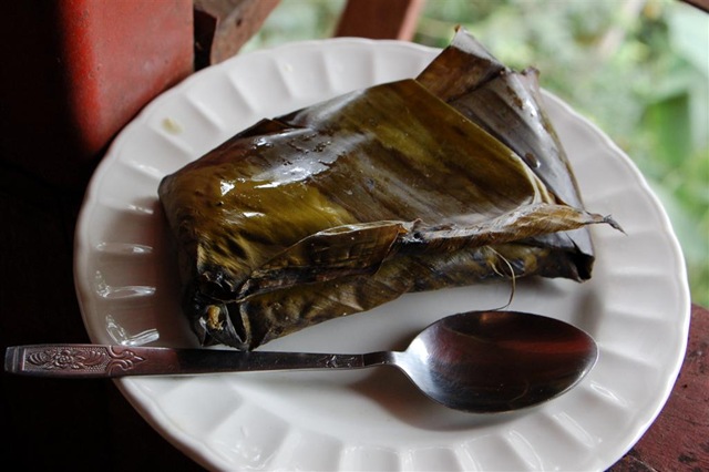 Tamale Mdłe tamales, masa kukurydziana zapiekana z nadzieniem z ryżu i mięsa w liściu bananowca (podobno również pochodzenia meksykańskiego, ale jedzone także w Nikaragui i Kostaryce), też nie okazały się odkryciem roku, niestety. Całość wygląda jak nasze gołąbki, ale za to liścia bananowca się nie je, ale odwija jak serwetkę. To już moje drugie podejście do tamales – pierwsze kupiłam w Nikaragui, ale było to kompletne nieporozumienie – okazało się, że to wersja okrojona zawierająca liść bananowca oraz masę kukurydzianą li i jedynie. Może wersja przygotowywana tu na Święta Bożego Narodzenia jest smaczniejsza…  Jest także nadzieja, że inne typy tamales, a jest ich mnóstwo, stanowią lepszy kąsek dla podniebienia. Na razie jednak pozostaną mi marzenia o gołąbkach. Najlepiej z grzybami :-).