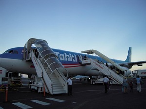 Wystartowaliśmy grzecznie 8 go października w czwartek o 6 rano z Polinezji Francuskiej lotem Air Thaiti Nui 101 na Fidżi (z przesiadką w Auckland). Po drodze tak mniej więcej koło 11 (nadal przypominam: w czwartek) naszego polinezyjskiego jeszcze czasu (gdy już byliśmy dobrze po śniadanku, po małym piwku na smaka i po jednym zajmującym filmie) pilot oświadczył, że przekraczamy linię zmiany daty. Samolotem zatrzęsło, maszyna nagle przyspieszyła i wpadła w tunel pełen kolorowych świateł. Gdy spojrzeliśmy za okno zobaczyliśmy ciemne, kotłujące się chmury i setki latających zegarów od małych naręcznych do takich wielkich z wahadłem – wszystkie bimbały i kręciły wskazówkami jak szalone do przodu. Niestety nie zdążyłem zrobić zdjęcia, bo trwało to tylko parę chwil (linia zmiany daty nie jest szeroka – wystarczy przekonać się na jakimkolwiek globusie) i samolot wypadł na słoneczne niebo z dźwiękiem przypominającym wyskakujący korek od szampana. “Jest piątek, 9 października, godzina 11 rano” oświadczył pilot. Wśród nie znających tematu wywołało to niemałe poruszenie i już chcieli pilota przez okno wyrzucać, że im zabrał jeden dzień z wakacji. Najbardziej zdenerwował się Bernaś, bo urwało mu czwartek (a nasze dzieci mają w czwartki “słodki dzień” i tylko wtedy jadają słodycze). Na szczęście atrakcyjna, polinezyjska stewardesa podała wszystkim po cukierku na uspokojenie. My zaś siłą rzeczy przesunęliśmy “słodki dzień” na piątek. 🙂