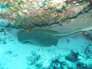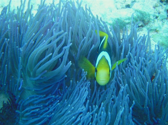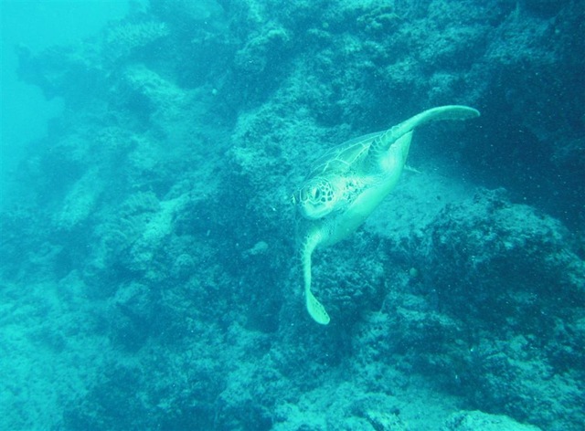 Jak więc wygląda ta rafa? Okazało się, że jest to cały szereg raf oraz wysepek ciągnących się kilometrami. W sumie tworzy to wielką barierę osłaniającą ląd od oceanu, ale osłona ta znajduje się najczęściej metr lub kilka metrów pod wodą. Gigantycznych węży morskich też tam nie ma, tylko czasami rekiny przypływają. Pod wodą rafa okazała się być bardzo ładna i pełna kolorowych korali i wesołych rybek, ale ze względu na porę roku przejrzystość wody niebyła najlepsza. Mimo to widzieliśmy sporo fajnych stworzeń w tym jednego wielkiego Maori Wrasse, który przepłynął majestatycznie obok nas łypiąc groźnym okiem. Wspólne nurkowanie (w sumie zrobiliśmy trzy nurki) dało nam też okazję do popracowania nad podwodną komunikacją i myślę, że kolejne zejścia razem będziemy robić już z mniejszym stresem.