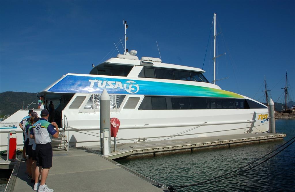 Przemysł nurkowy w Cairns jest zorganizowany inaczej, niż w dotychczas odwiedzanych przez nas miejscach. Ponieważ oboje nurkujemy i jednocześnie musimy mieć na oku dzieciaki, szukaliśmy firmy oferującej pakiety nurkowe, które moglibyśmy wykorzystać sumarycznie na zmianę. Okazało się, że nie da się zrobić nurkowań bez wykupienia wycieczki na rafę (która tutaj oddalona jest od lądu o półtorej godziny szybką motorówką). Większy pakiet jest zaś możliwy tylko przy opcji “mieszkaj na łodzi”, która z przyczyn czysto finansowych jest poza naszym zasięgiem. Gdyby tak udało się jednak (eh, marzenie!) popłynąć kupą na wycieczkę i gdybyśmy mogli zrobić 2 nurkowania razem, a w tym czasie dzieciaki mogłyby snorklować (“rurkować”, czyli nurkować z maską) pod czujnym okiem ratowników? Choć oboje mamy na koncie już kilkadziesiąt nurków to praktycznie nigdy jeszcze nie udało nam się robić tego (znaczy się, nurkować :-)) razem.