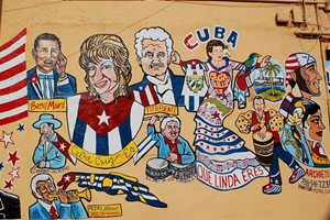 Wracając z Keys wstąpiliśmy za namową Gabi (oraz Lonely Planet) do kubańskiej dzielnicy Miami – Little Havana. Pierwsza obserwacja była taka, że z hiszpańskim jeszcze się nie żegnamy. Główna ulica nazywa się Calle Ocho i nie chce inaczej (ulica ósma, lub po prostu Eight Street). Miami ma bardzo dużą mniejszość (czy też większość) hiszpańsko-języczną i gdy sprzedawca na stacji benzynowej pod Miami przyznał się do honduraskich korzeni opowiadając, że Polska ma niezłych piłkarzy (Lato i Boniek przewijali się przez ostatnie miesiące w rozmowach – i tutaj dokładnie tak samo), uśmiech od razu pojawił się na nam na twarzach. Niestety akurat była niedziela po południu i Little Havana wyglądała na lekko wymarłą – chyba dopiero wieczorem coś się zaczyna dziać. Mieliśmy więc pecha. Druga obserwacja była taka, że nie da się ukryć: po ponad 3 miesiącach spędzonych w różnych miastach Ameryki Łacińskiej dzielnica kubańska w wydaniu amerykańskim wygląda … bardziej amerykańsko, niż hiszpańsko. Ulice są szerokie, samochody amerykańskie, a sklepy tylko udają zostawioną gdzieś ojczyznę. Miło jednak zobaczyć, jak bardzo kubańczycy trzymają się swoich tradycji i jak próbują na tym budować biznes. Ilość restauracji z jedzeniem kubańskim, sklepów z pamiątkami i fabryk cygar (koniecznie hand-rolled) była bowiem spora, a malutki park (udający Parque Central) pełen gwaru.